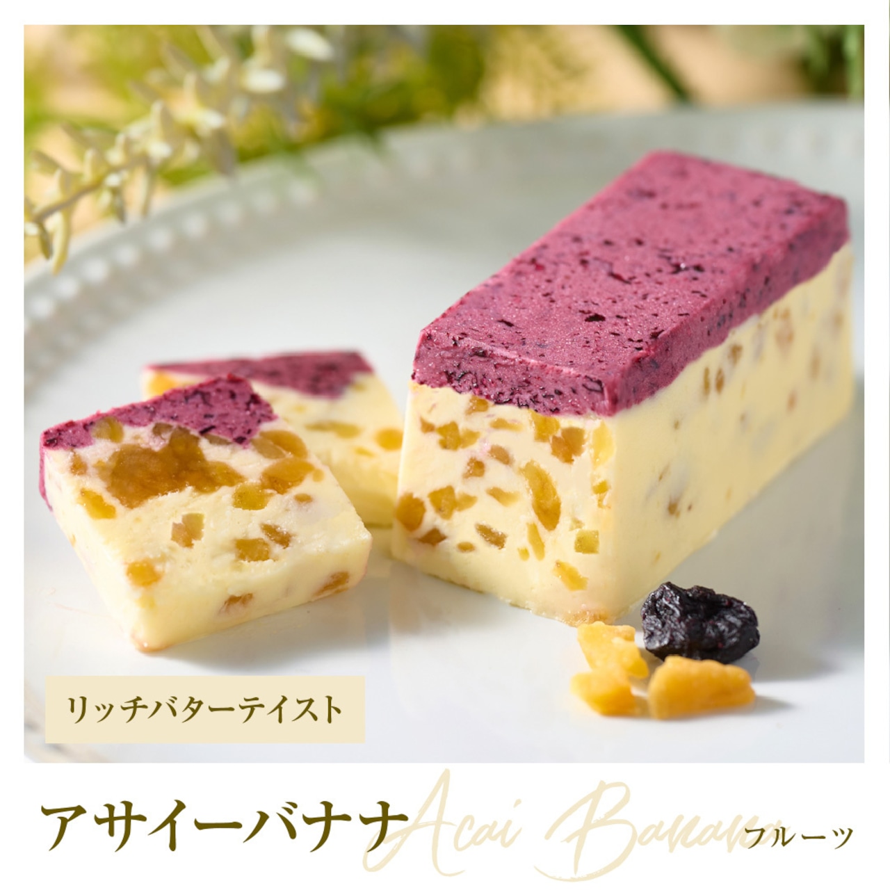 甘酸っぱいアサイーと濃厚バナナが2層になって、味わい豊かなフレーバーバターです。
