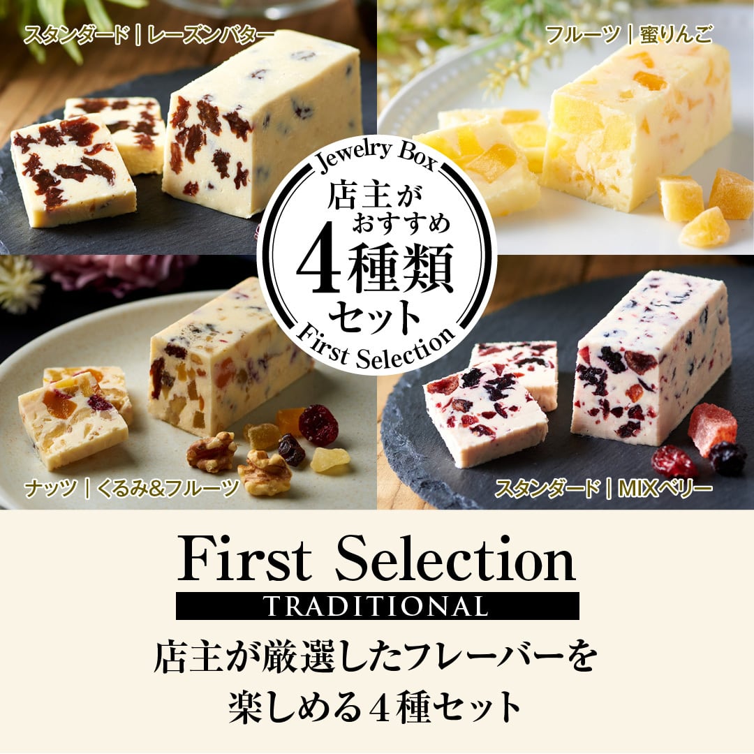 First Selectionとは、どれを選べばいいかわからない!そんな方にJewelry Boxがお勧めする特定の4種類をピックアップしたフレーバーバターのセット商品です。