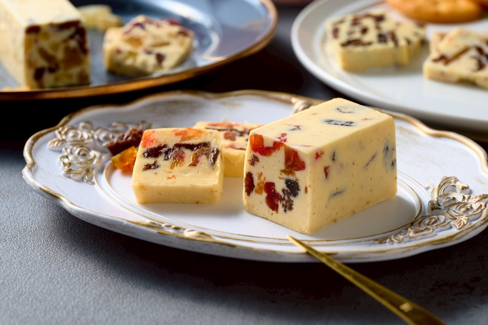 バター(国内製造)(生乳・食塩)、ナチュラルチーズ(生乳・食塩)、ブランデー、くるみ、レーズン、クランベリー(砂糖・食物食用油脂)、マンゴー(砂糖)、 パイン(砂糖)、キウイ(砂糖)、砂糖、オレンジ果汁、リキュール、レモン果汁/安定剤(増粘多糖類)、クエン酸、酸化防止剤(亜硫酸塩)、カラメル色素